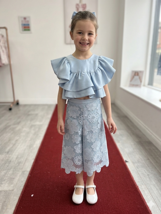 Sky Blue Ruffle Top & Lace Culottes Set