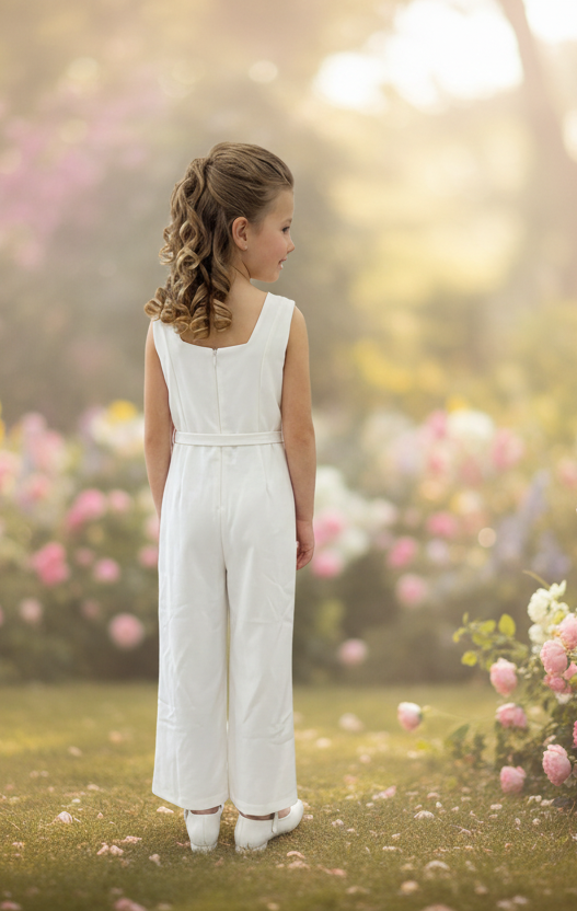 Girls White Occasion Jumpsuit
