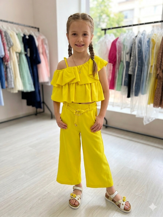 Girls Yellow Ruffle Two-Piece Set