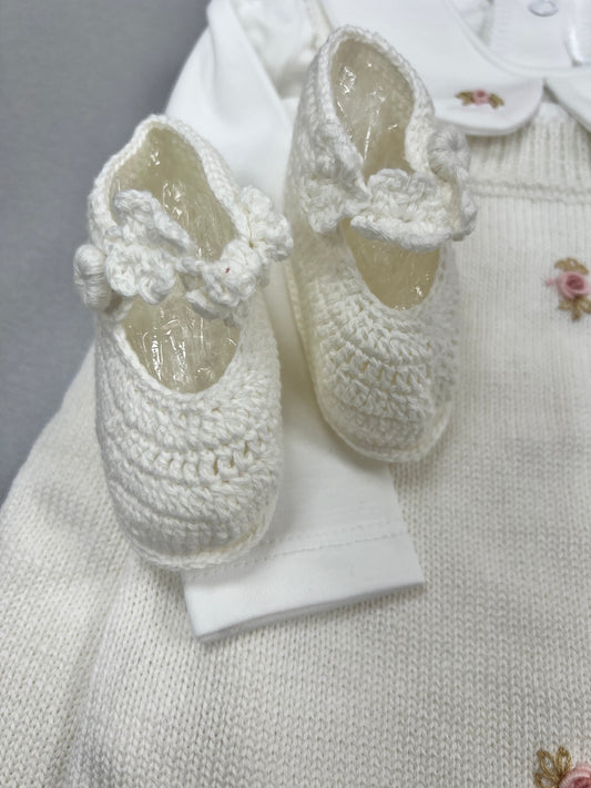 Baby Girl’s Take me home set.white with embroidered flowers V22 06 258-1