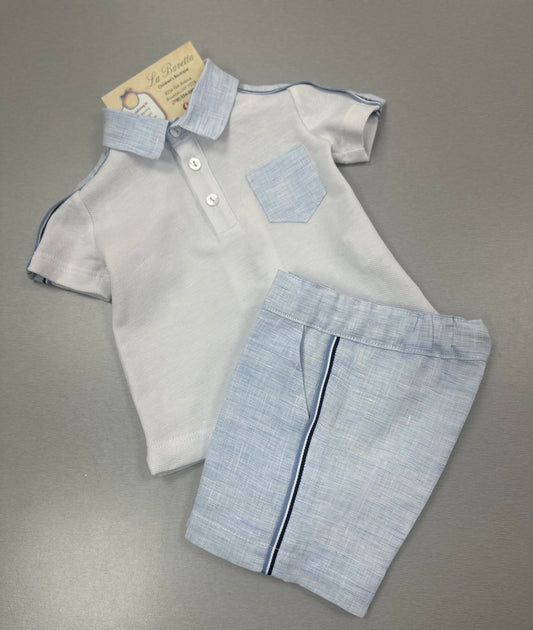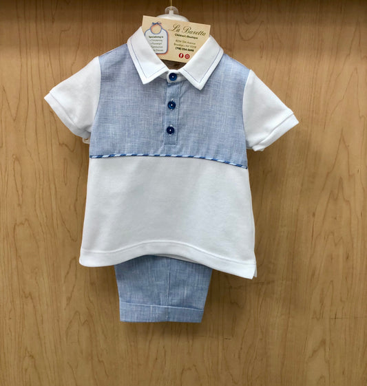 • Baby Boy 2pc cotton knit blue and white shorts set DK116