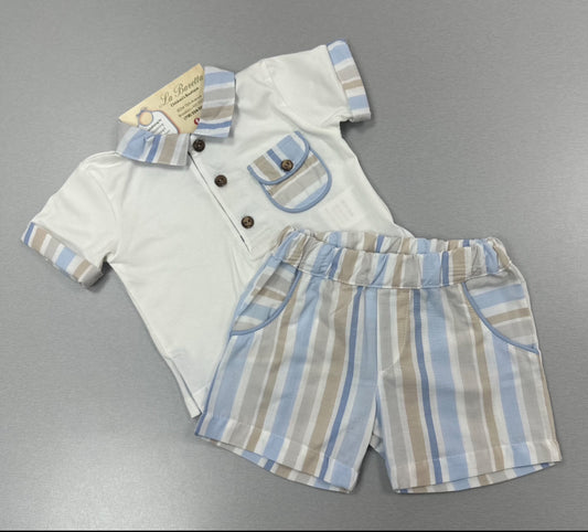 Bimbalo Boys polo Shirt white with striped shorts set made in Italy for