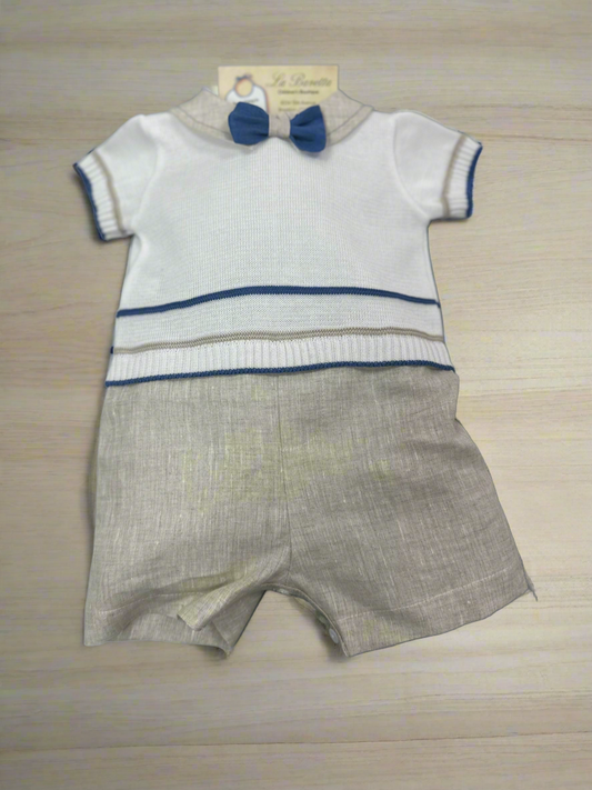 Bimbalo Boys Linen and Knit Romper Pagliacetto 6018j
