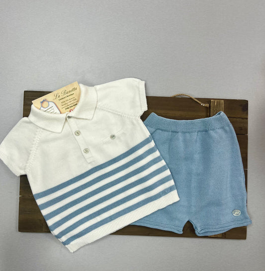 2pc cotton knit baby blue & white boys shorts outfit