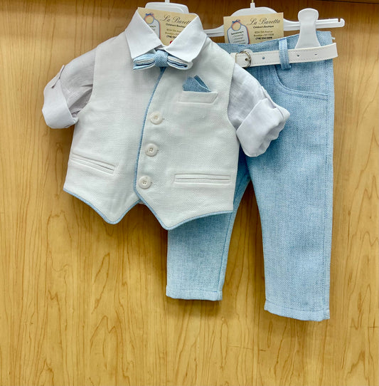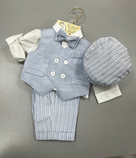 Bimbalo Boy's 5 Piece Light Blue & White Shorts and Vest Outfit with Cap 6646