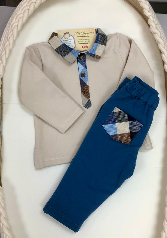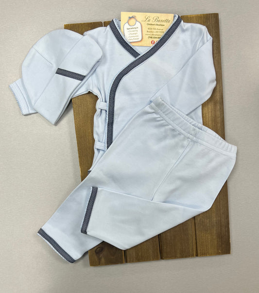 Sippy’s Babes 3pc boys set powder blue with denim trim