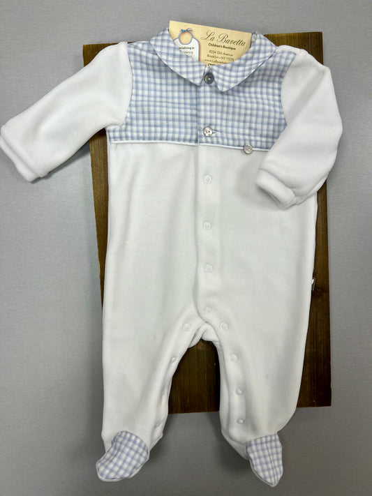 Velour/cotton baby Boys ivory with light plaid romper012406217-2