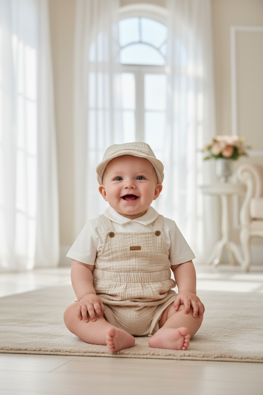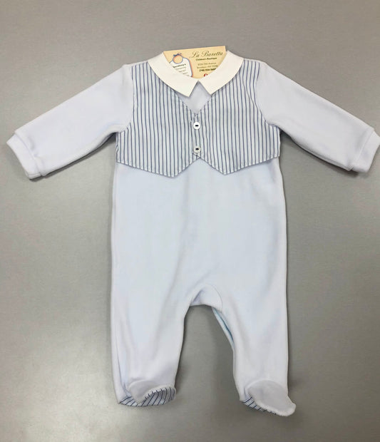 Baby Boy Blue Linen Vest Romper Set with Bow Tie Made In Italy
