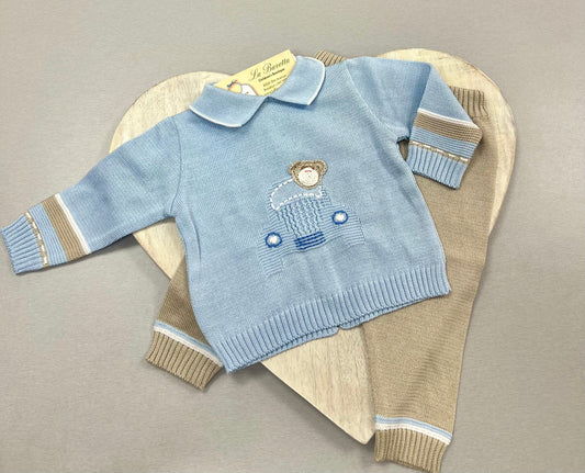 Italian Baby Boys Knit Sweater & Pants Set | Handcrafted Luxury Outfit