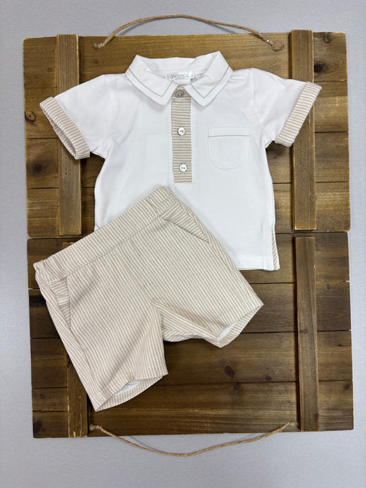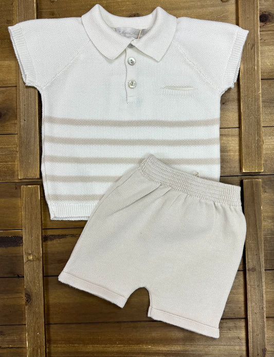 Baby Boy Ivory & Beige Striped Knit Polo Set