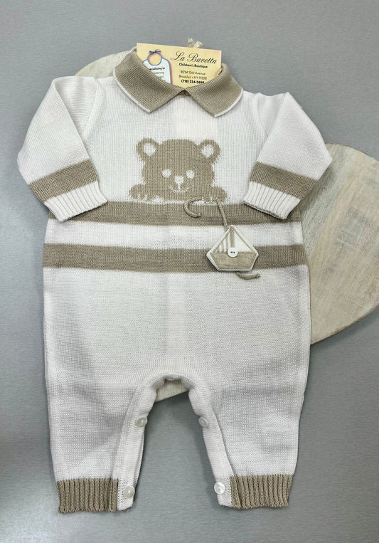 Teddy Bear Knitted Romper with Collar Made In Italy