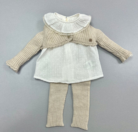 Bimbalo girls outfit ivory knit brocaded dress 7447