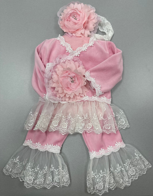 Angel girls pink & lace velour romper Katie Rose