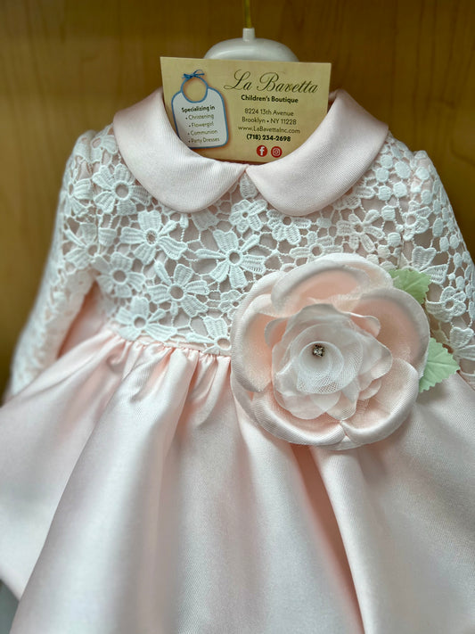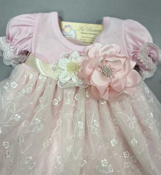 Adorable light pink baby girls dress made in Italy