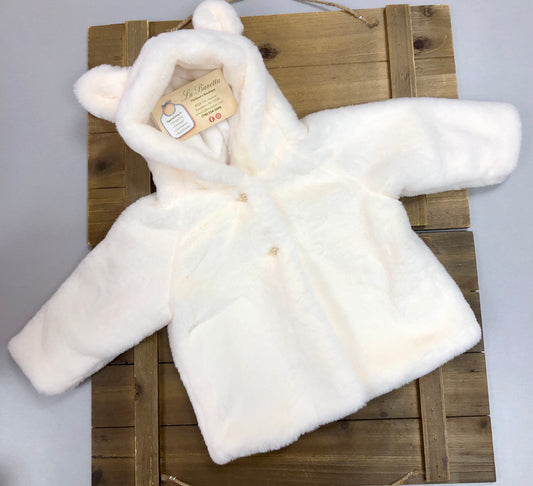 Baby’s white plush faux fur jacket