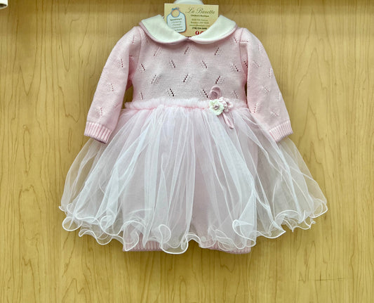 Adorable Pink Knit and tulle romper/Dress Made In Italy