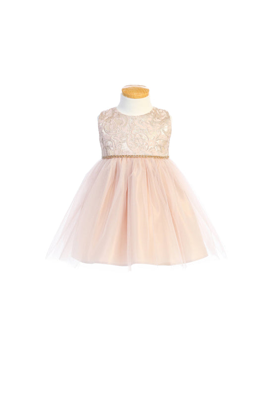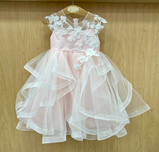 Jaquard Pink hi-low Dress with satin & tulle SK805