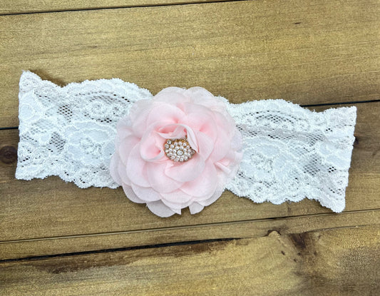 Pink and white sheer dotted lace Blair set by Katie Rose
