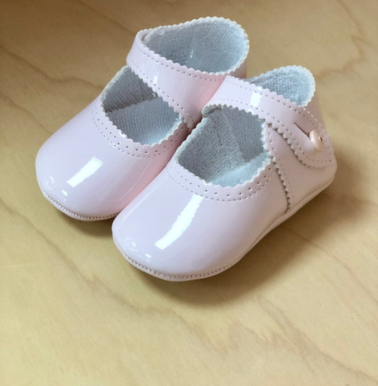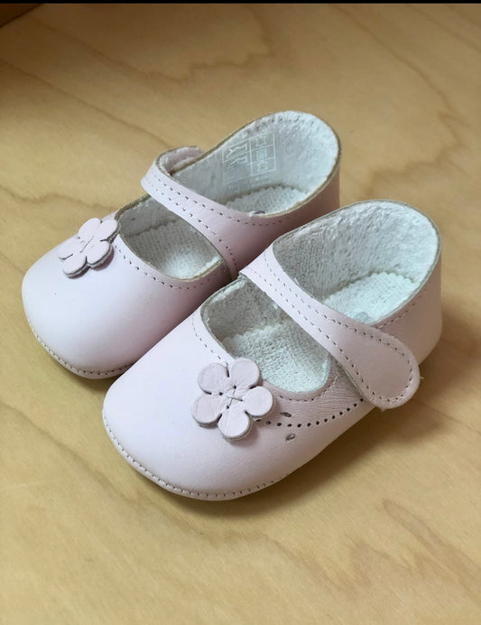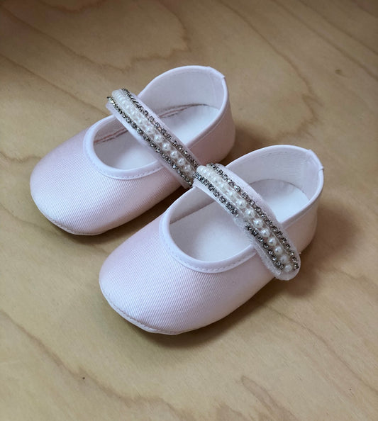 Baby Girls Pink Soft Shoes With pearls and Rhinestones Made In Italy