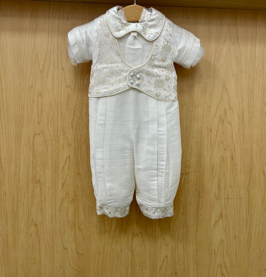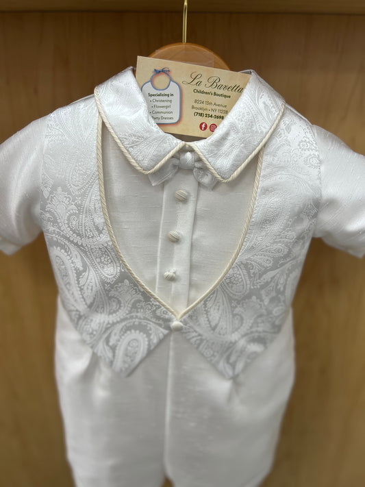 5pc Ivory & Gold Paisley christening Suit Made In Italy