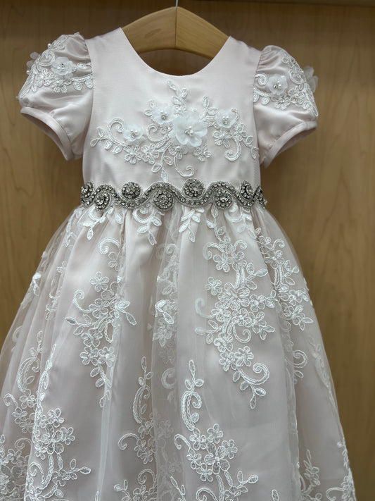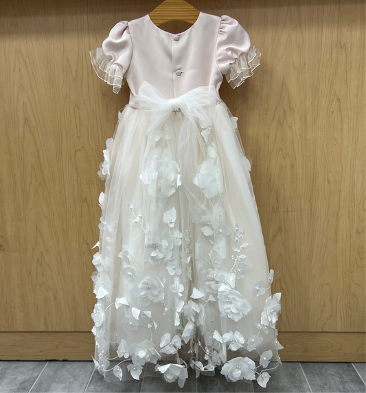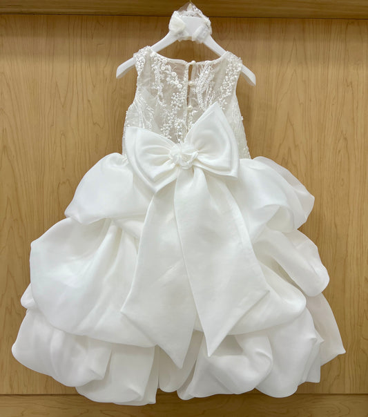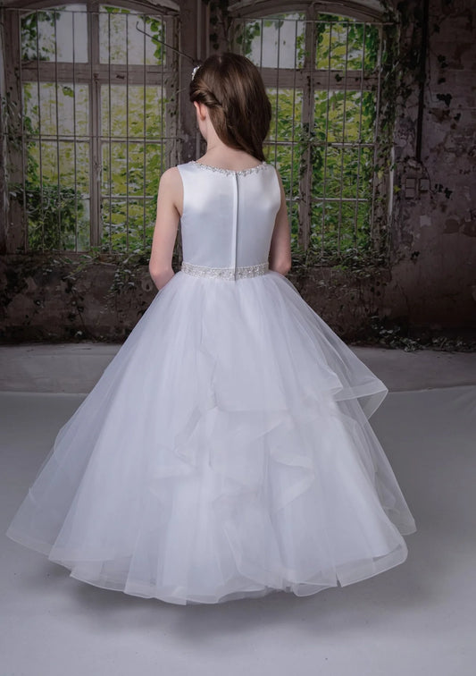 White Satin Bottom Pleated Flower Girl Gown Sienna Rose SR711