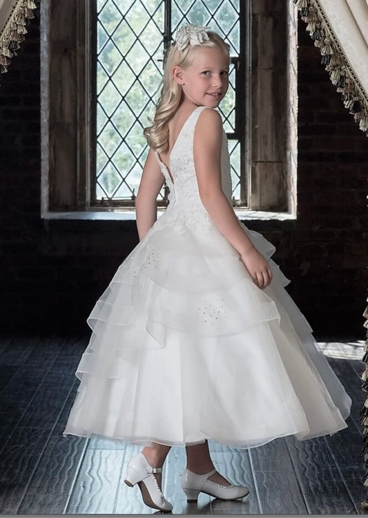 Michelina Bimbi Tiered Shimmer communion Gown made in Italy