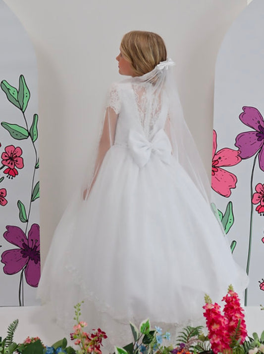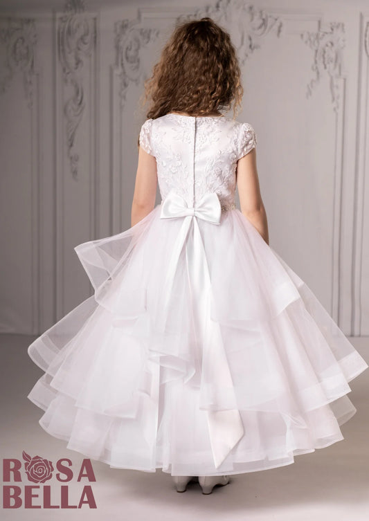 Rosabella Short Sleeve Lace Tiered Tulle communion dress RB299