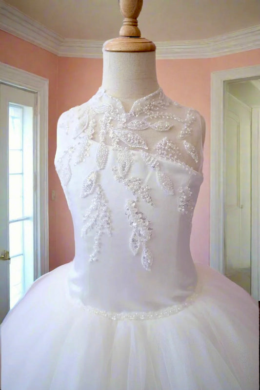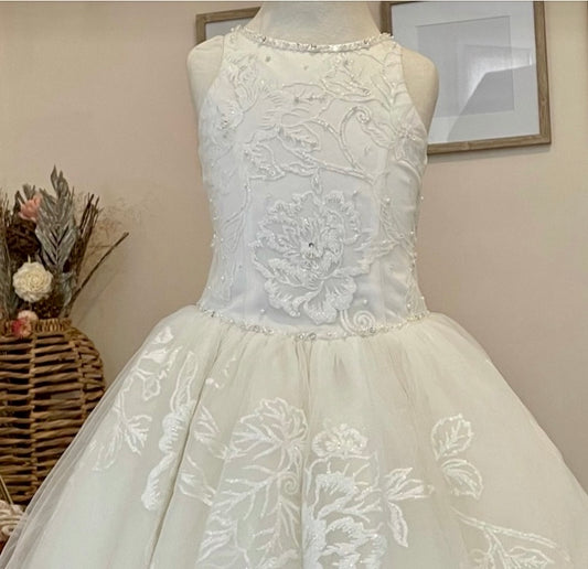 Christie Helene Communion Dress Sleeveless Flower Pearl