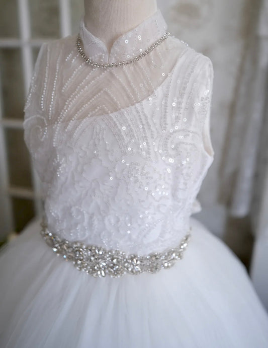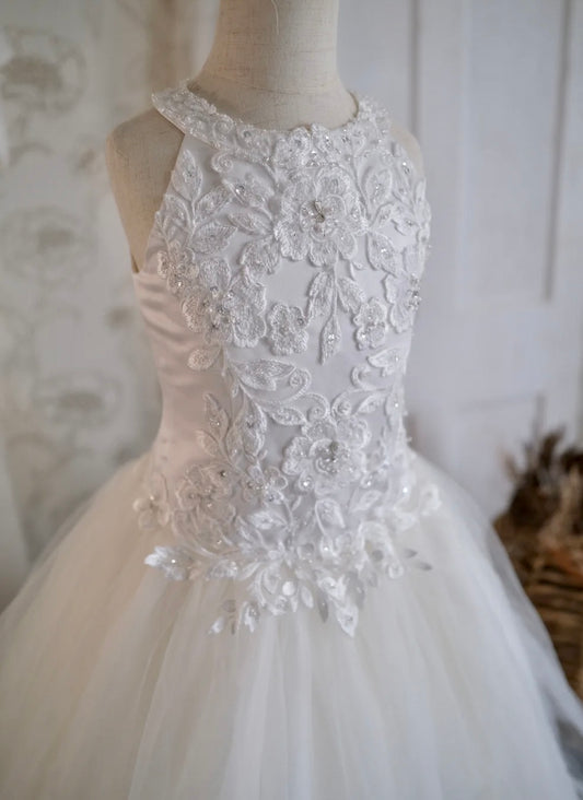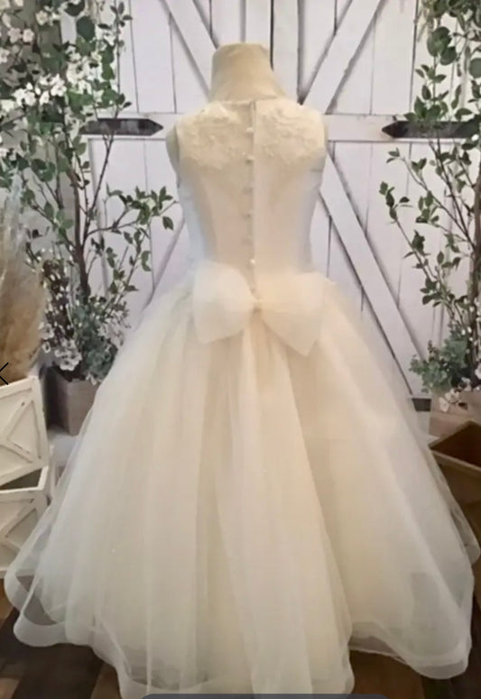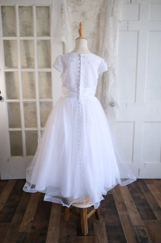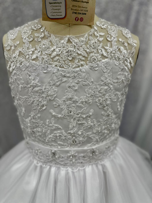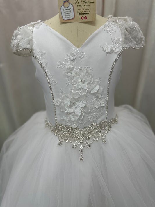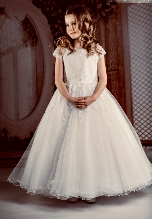 Rosa Bella Communion Dress with 3/4 sheer lace sleeve