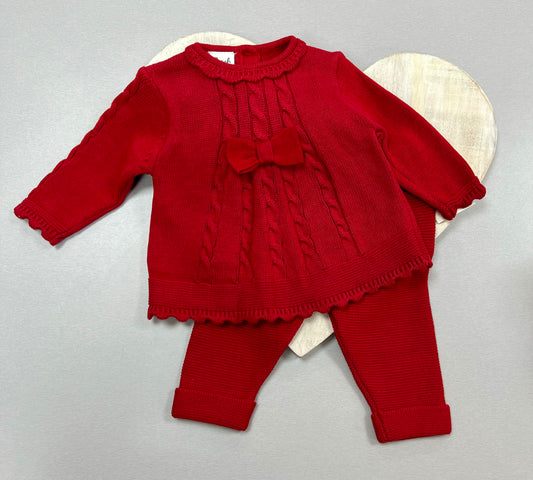 Sarah louise Girls Red cotton knit 2pc pant set 008226-1