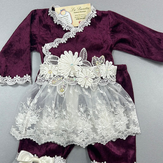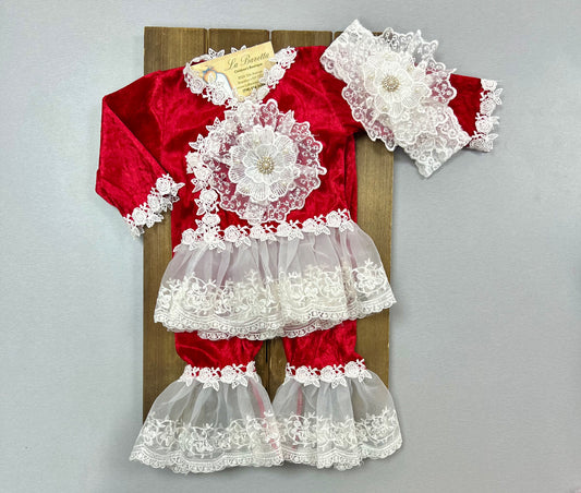 Katie Rose Blair Red velvet 2pc pants Girls set