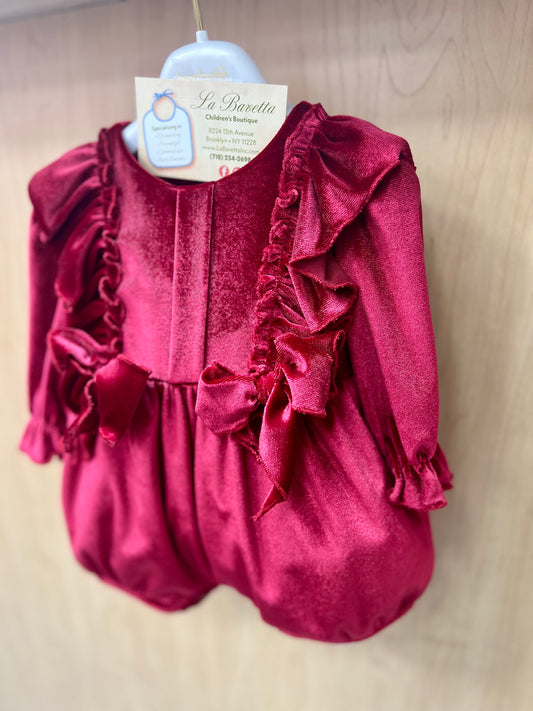 Elegant Red velour Ruffle Romper Made in Italy Bimbalo