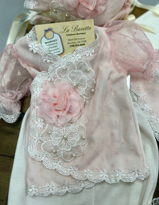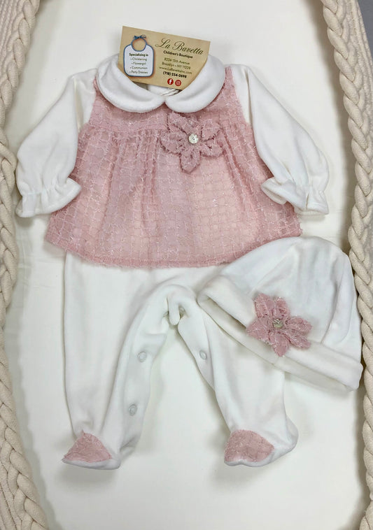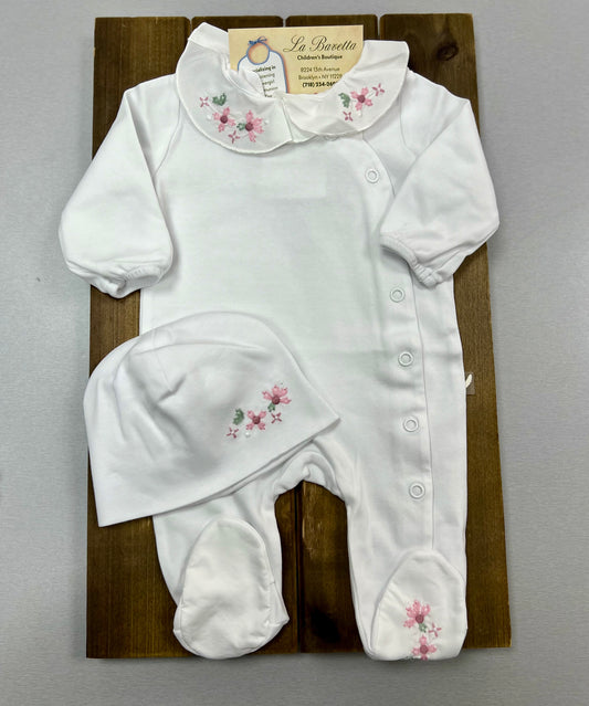 Baby Girl’s Take me home set.white with embroidered flowers V22 06 258-1