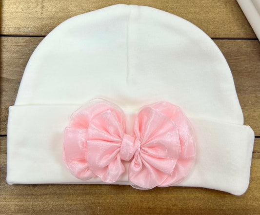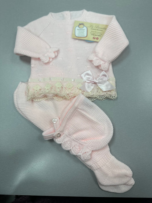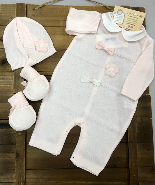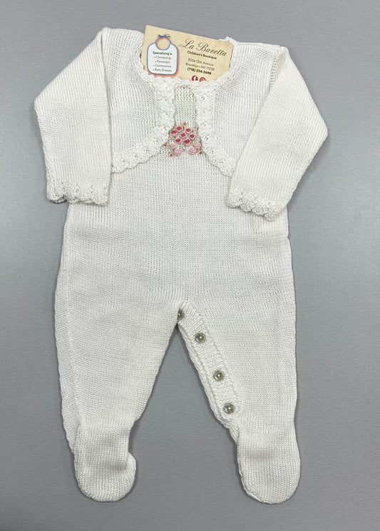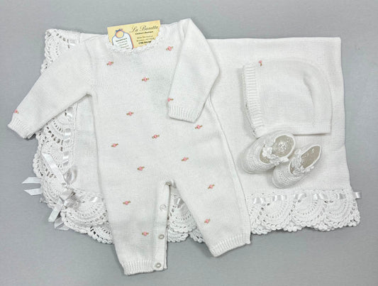Girls Cotton knit white with pink embroidered flowers Take me home set