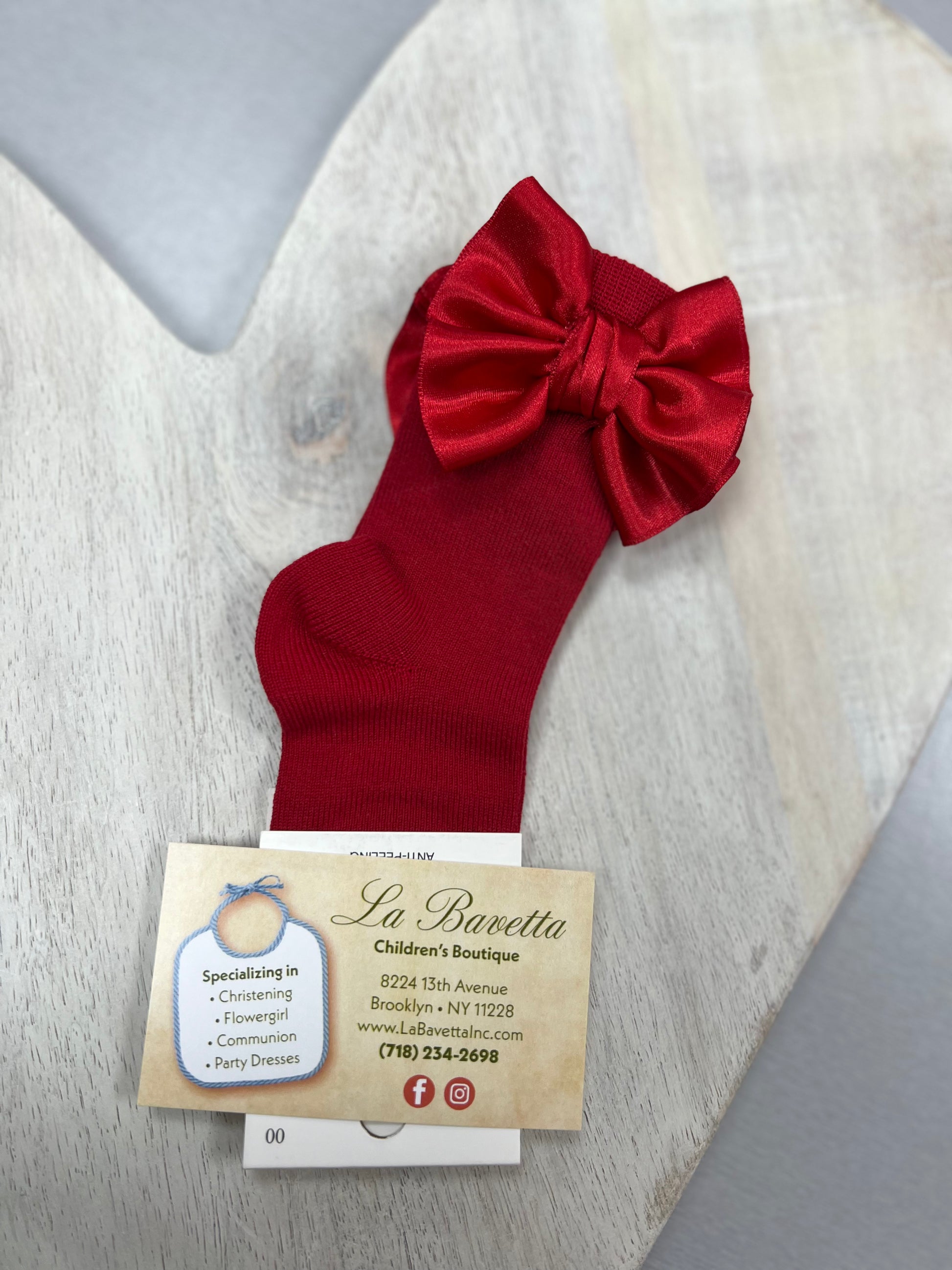 1127M Red cotton knee High socks with Satin side Bow