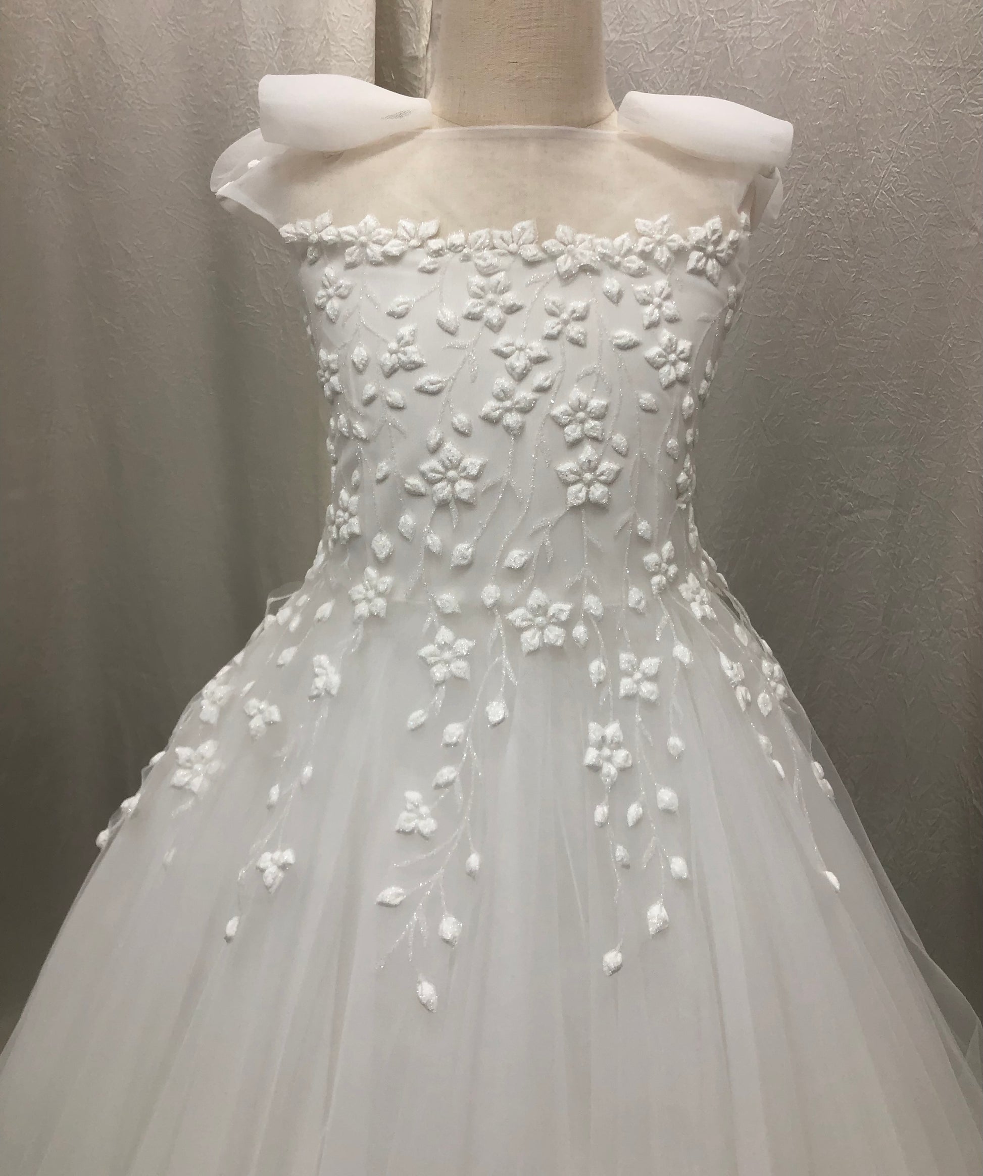 Michelina Bimbi Floral Embroidery Bow Shoulder Communion A-lineGown J4211