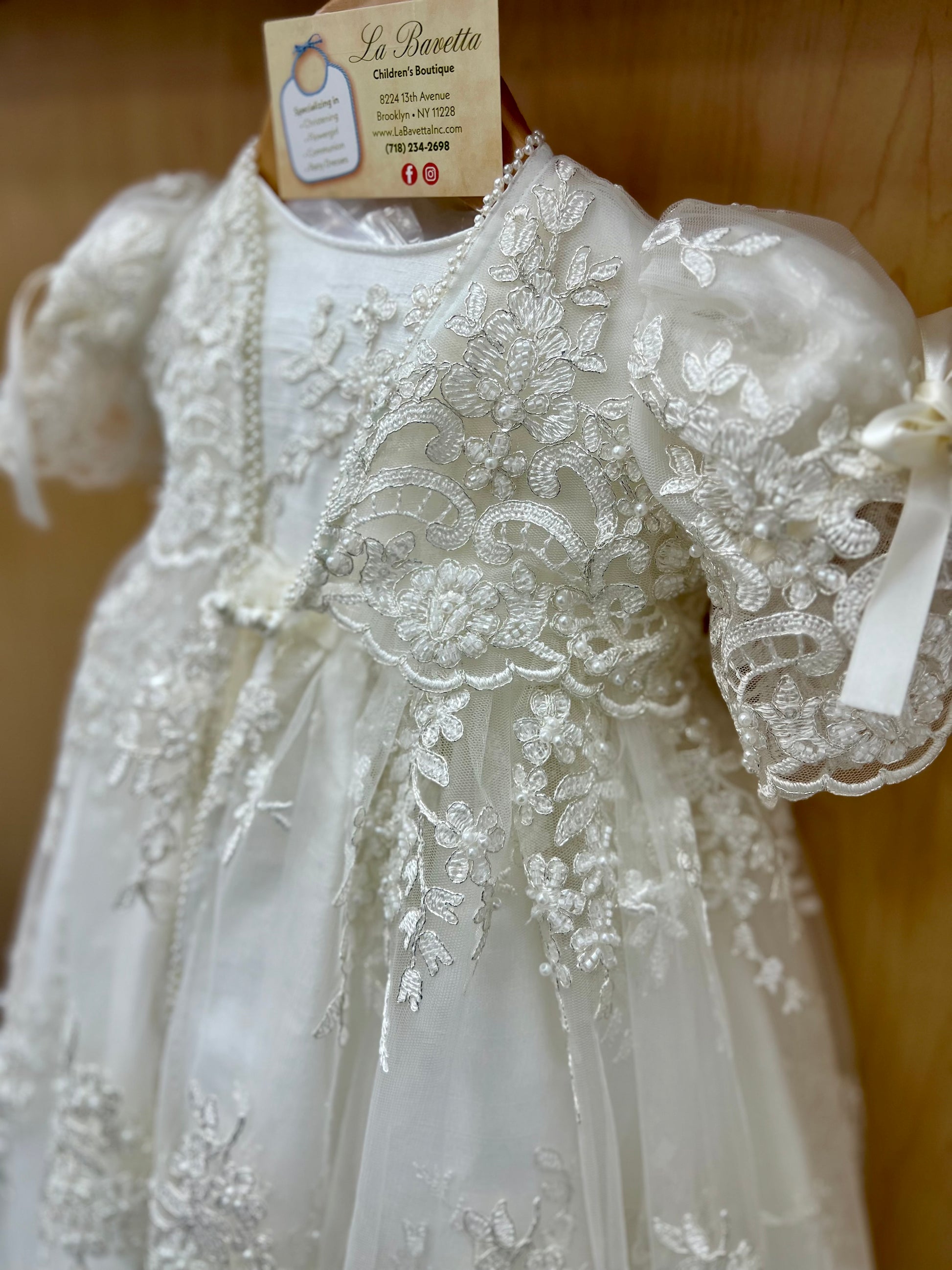 - Â Baby Christening Gown, heirloom quality christening gown with hand beading & matching Bonnet