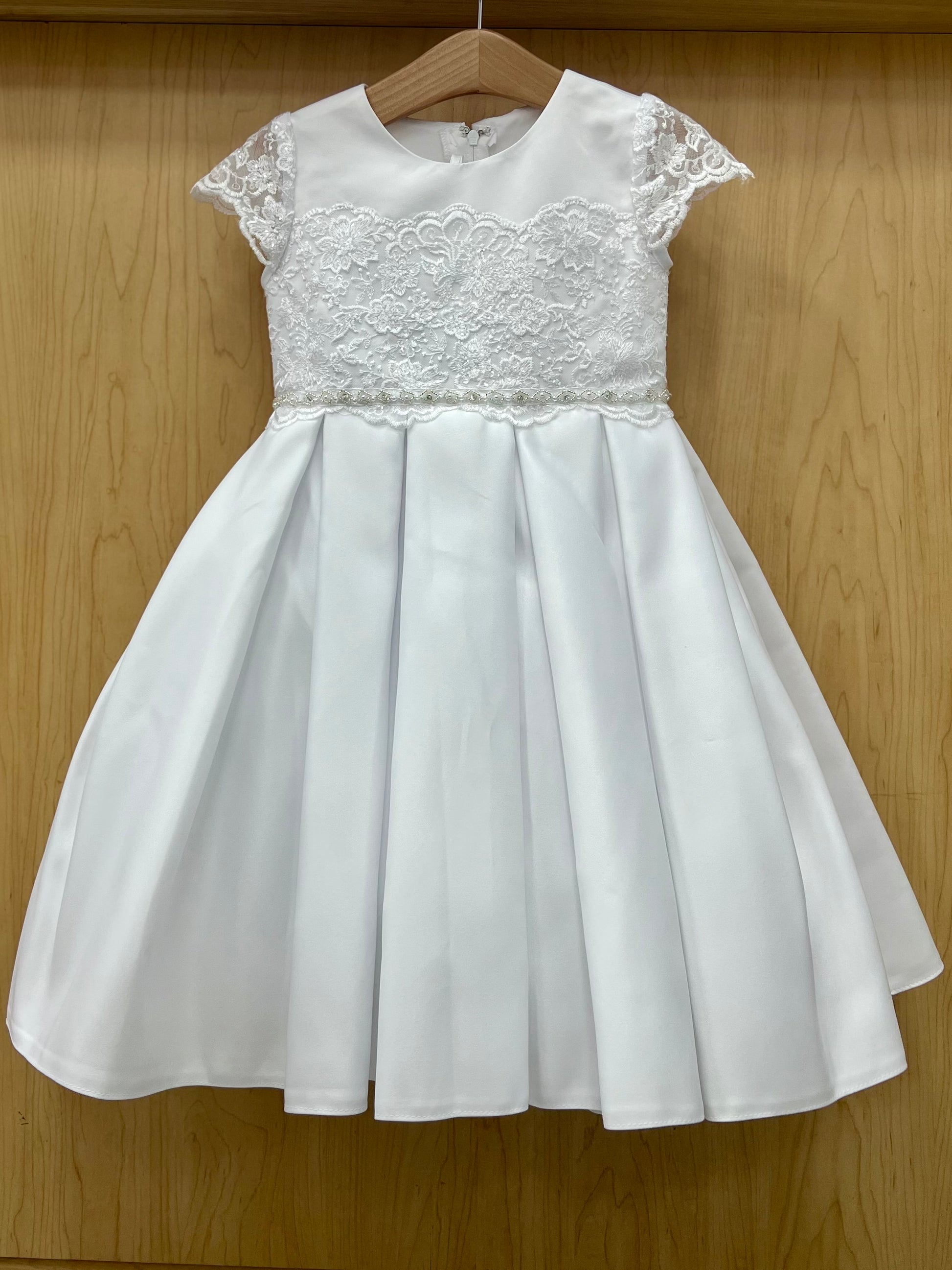 White Satin Bottom Pleated Flower Girl Gown Sienna Rose SR711