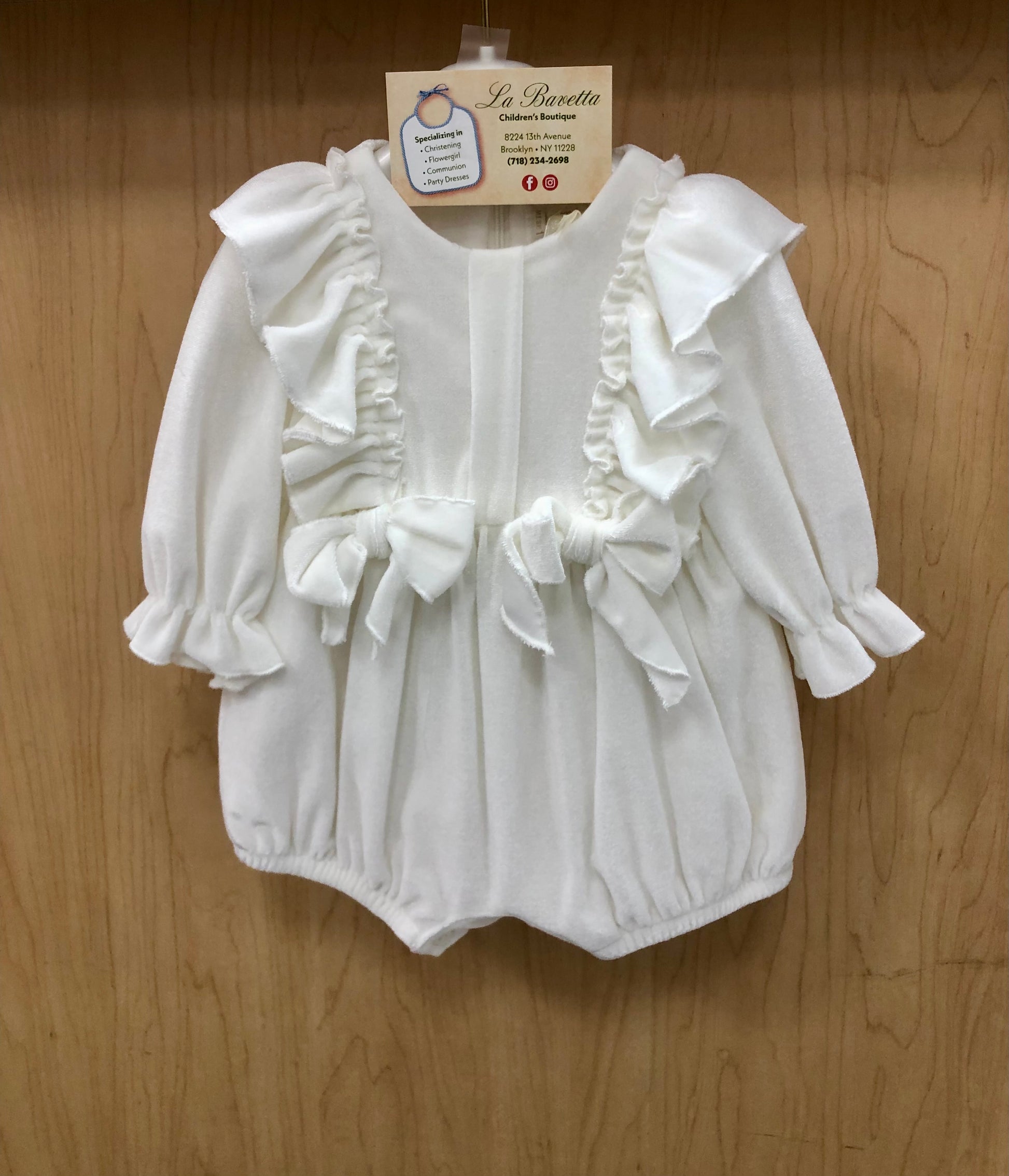 Elegant White velour Baby Ruffle romper made in Italy Bimbalo